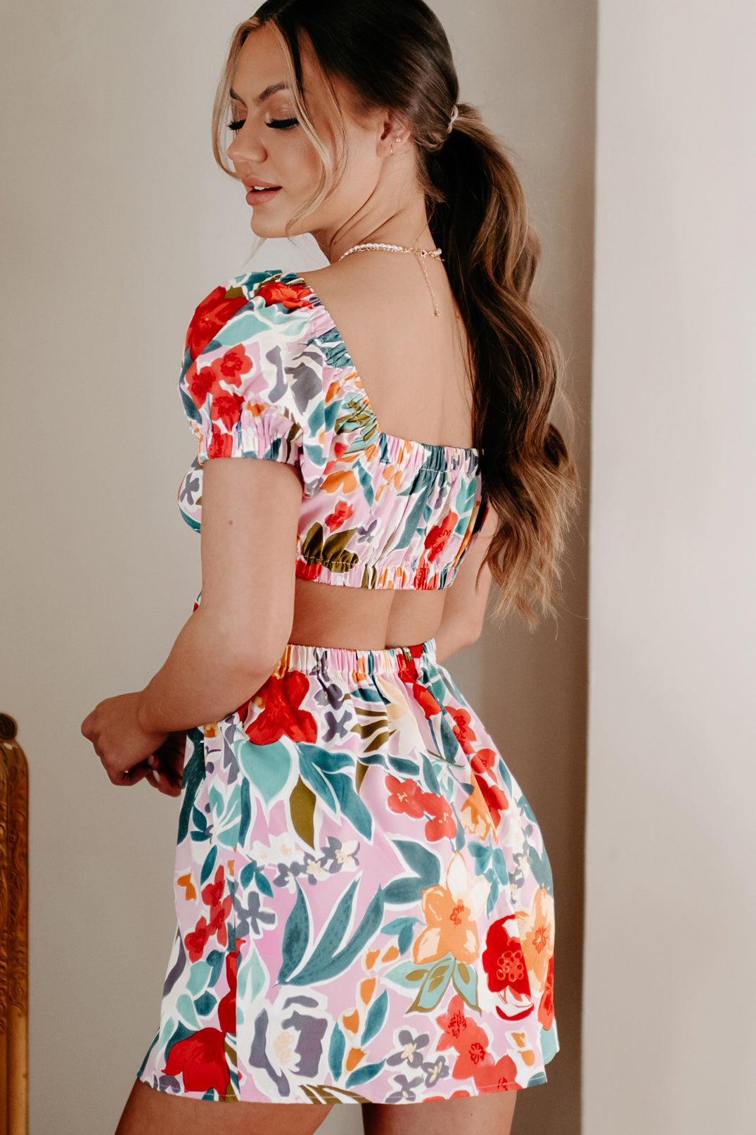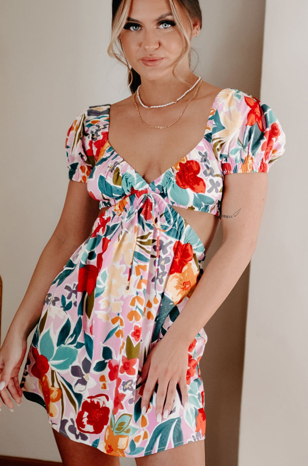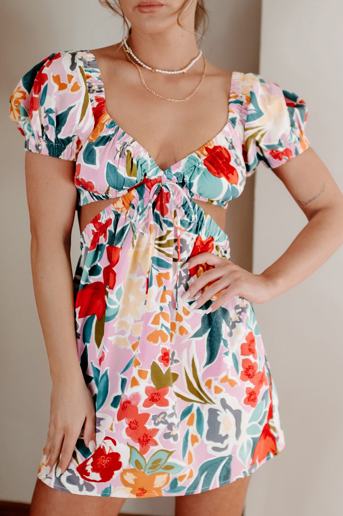 Reaching Out To You Cut-Out Floral Mini Dress (Pink/Multi) - NanaMacs