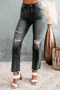 Grab These Black, High Rise, Distressed, Straight Leg Jeans Today!