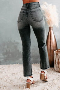 Reece Sneak Peek High Rise Distressed Straight Leg Jeans (Black Wash) - NanaMacs