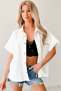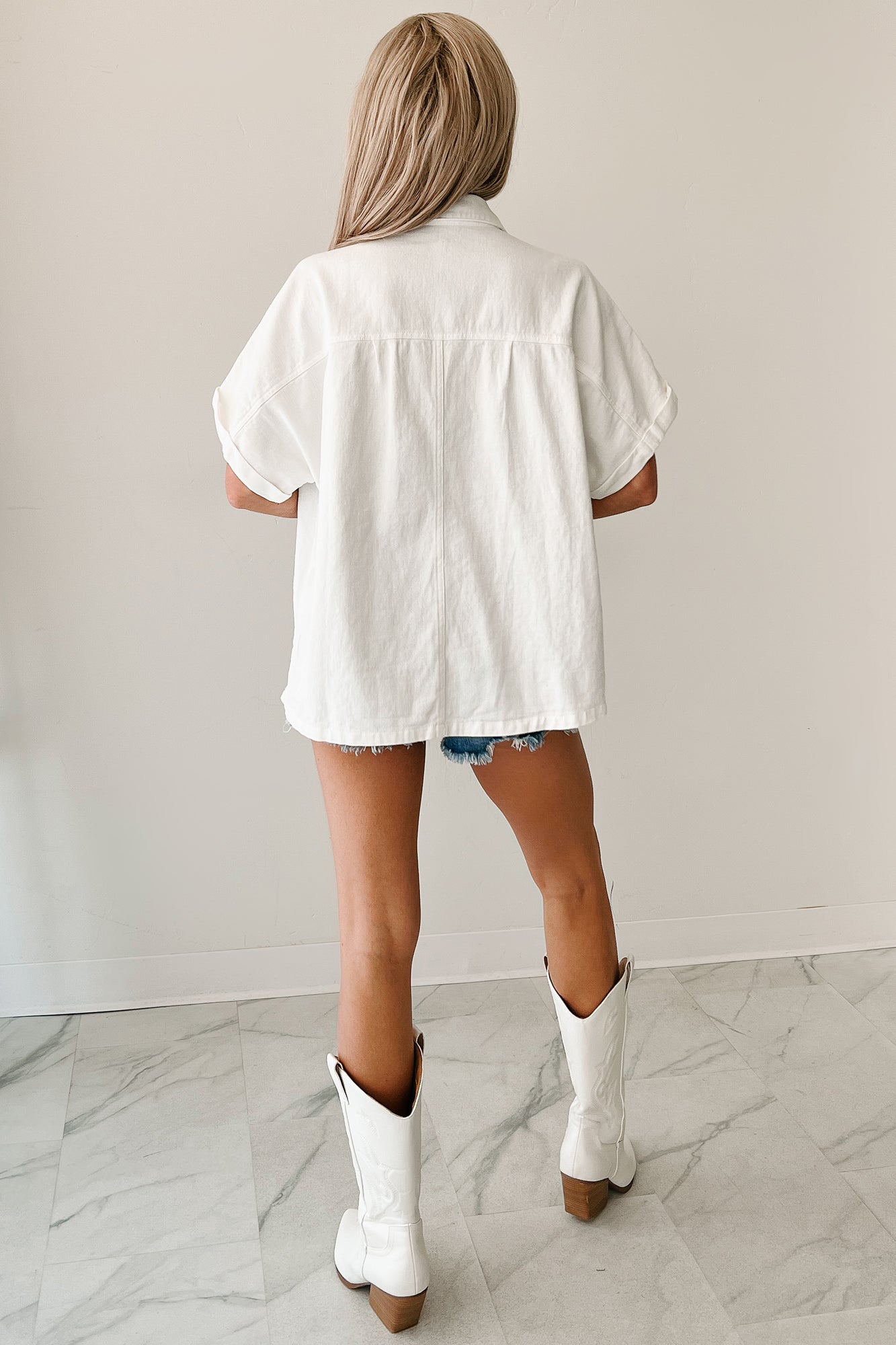 Relaxed & Cool Denim Short Sleeve Shirt (White) - NanaMacs