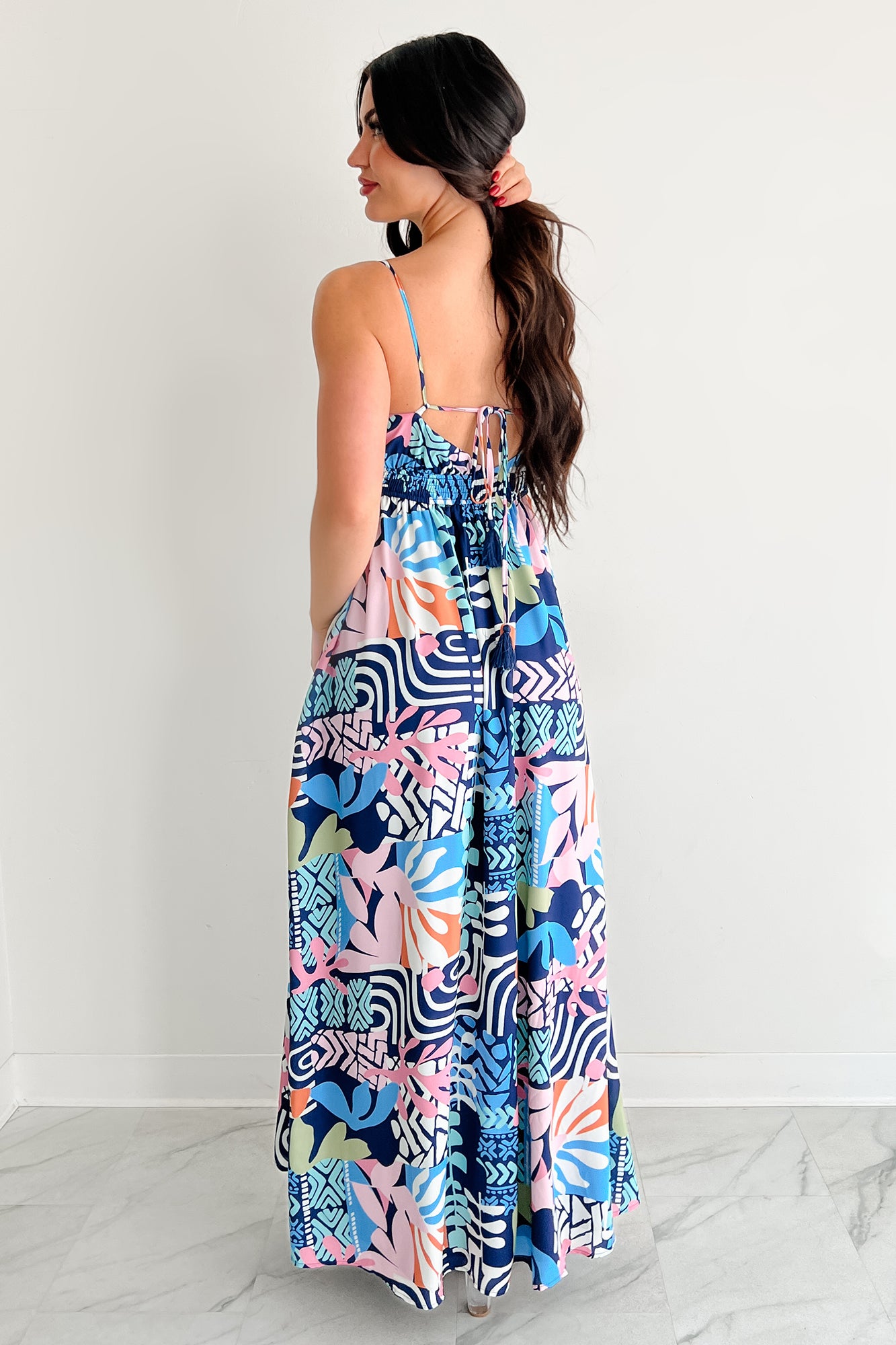 Relentlessly Bold Sleeveless Abstract Maxi Dress (Navy) - NanaMacs