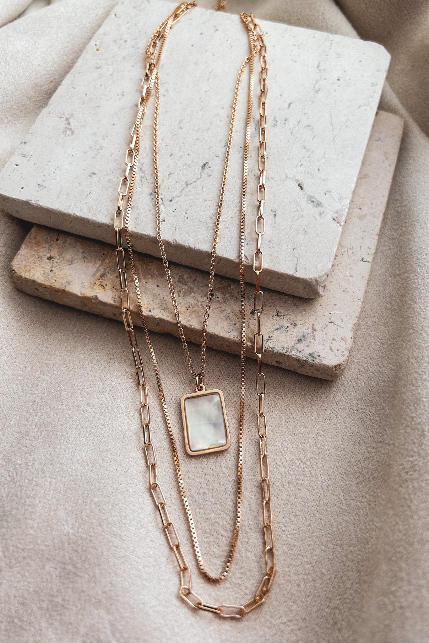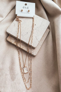 Reliving The Magic Layered Necklace & Earring Set (White/Gold) - NanaMacs