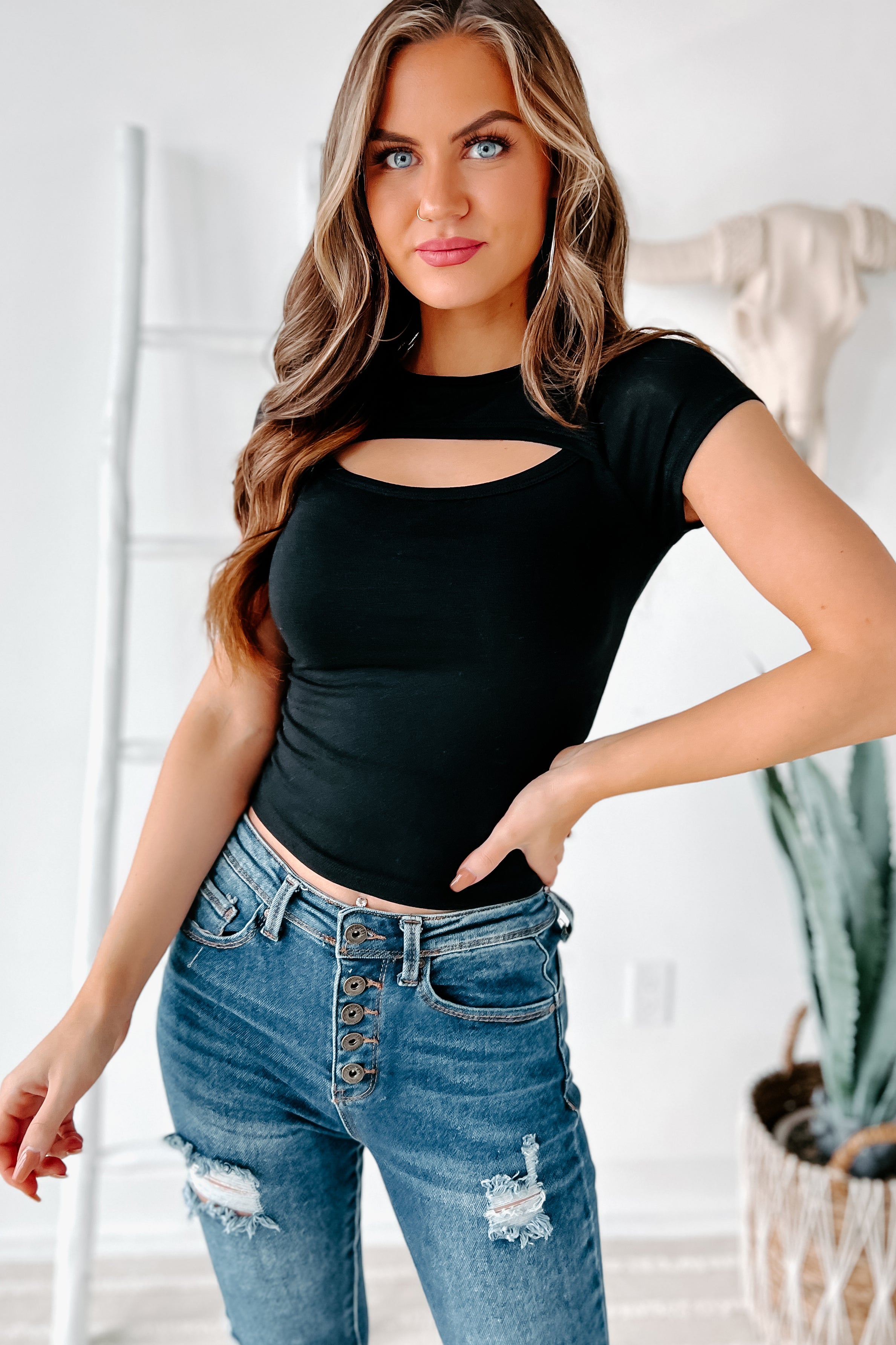 Rhianna Double-Layered Cut-Out Top (Black) - NanaMacs
