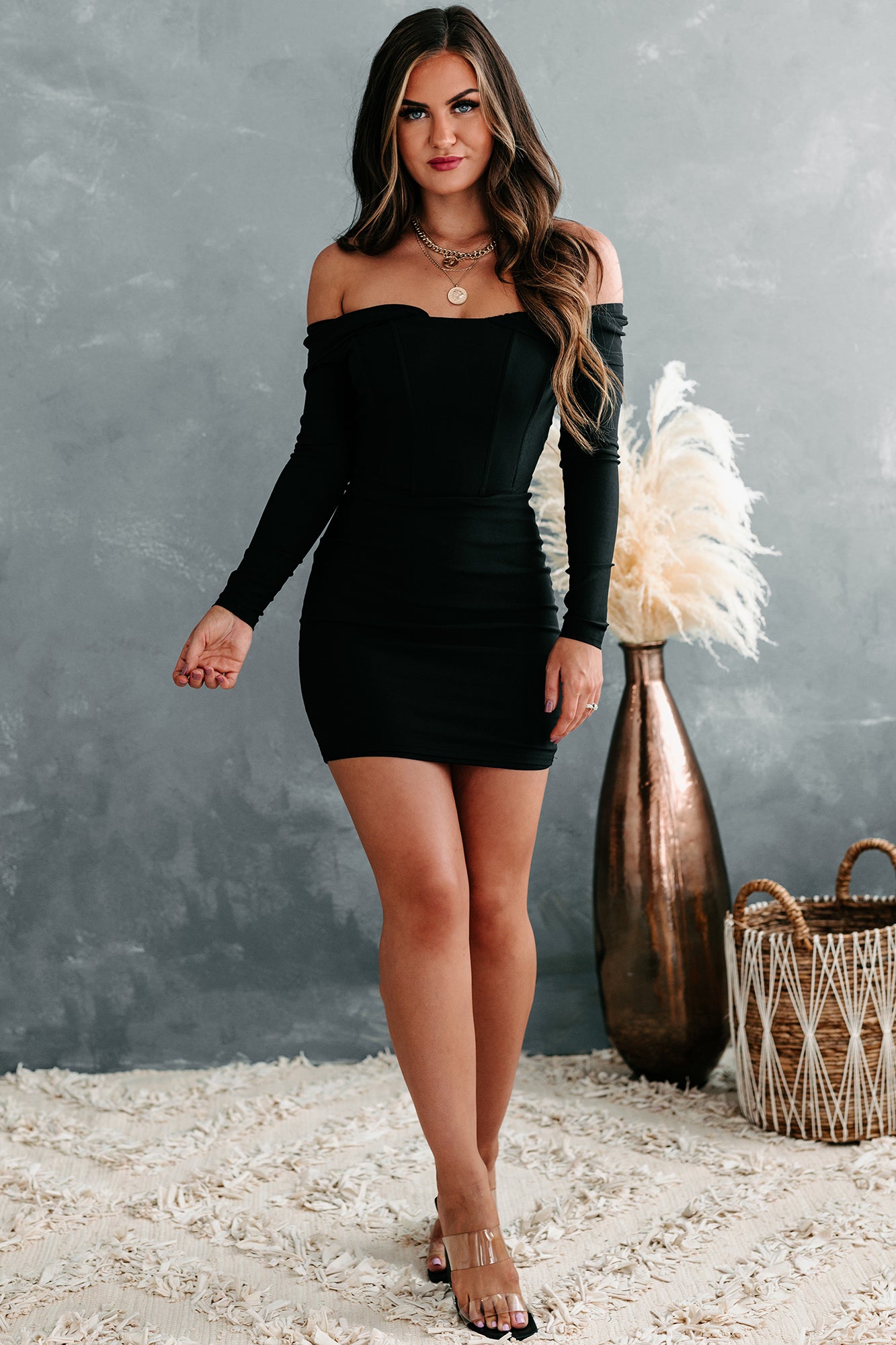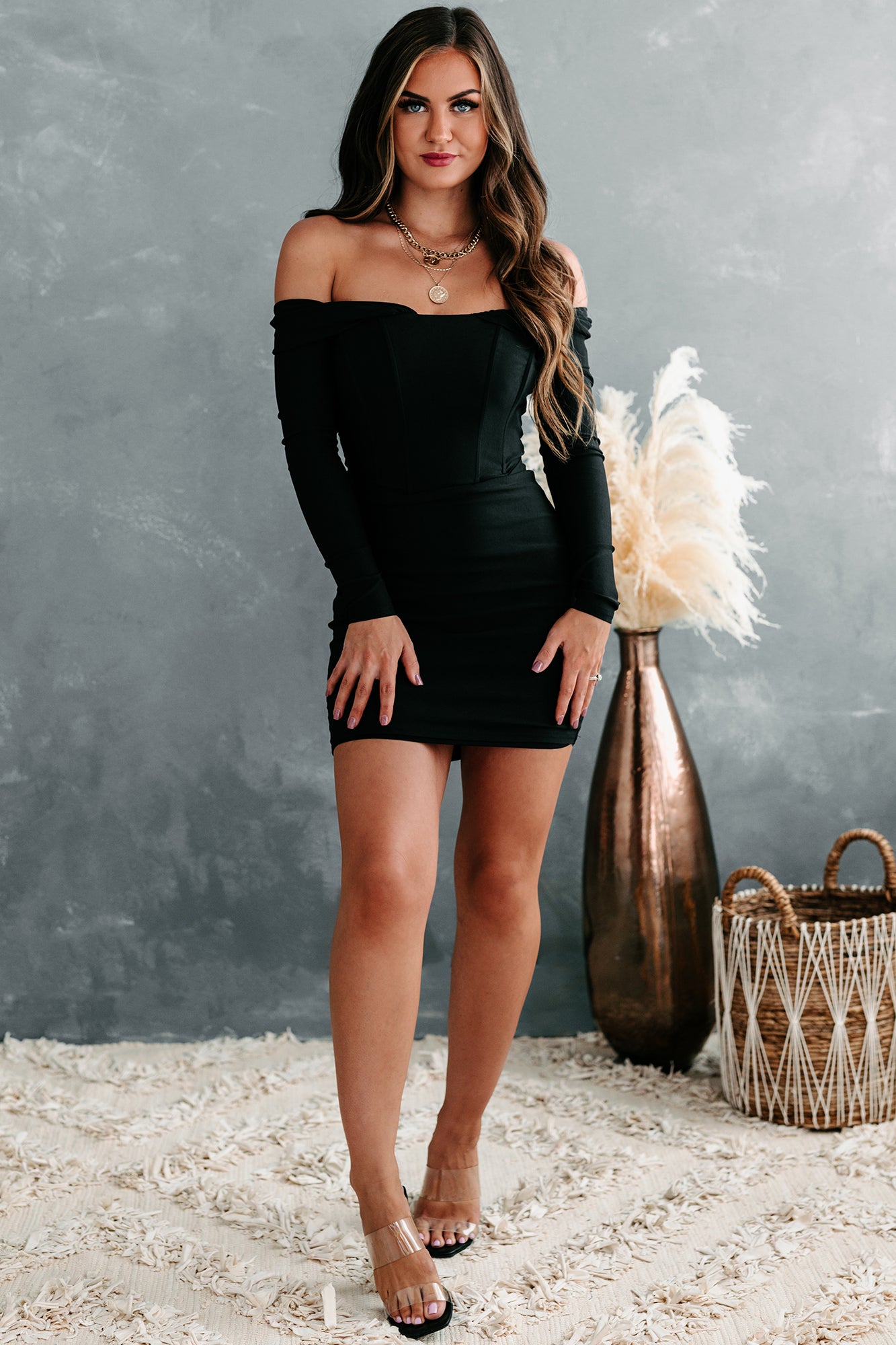 This Black Bodycon Is Your New Favorite LBD! The Sleeves Are So Cute, & The Boning Structure Provides Support & Comfort!