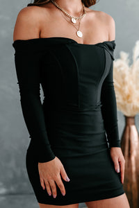 Rissa Off-The-Shoulder Bodycon Dress (Black) - NanaMacs