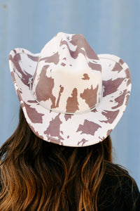 Rodeo Nights Cow Print Cowboy Hat (Brown)