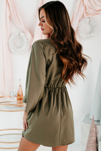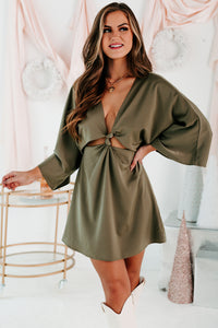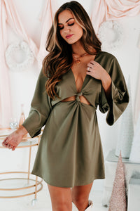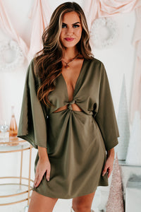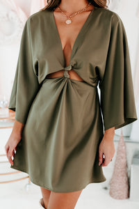 Romantic Reunion Cut-Out Satin Mini Dress (Olive)