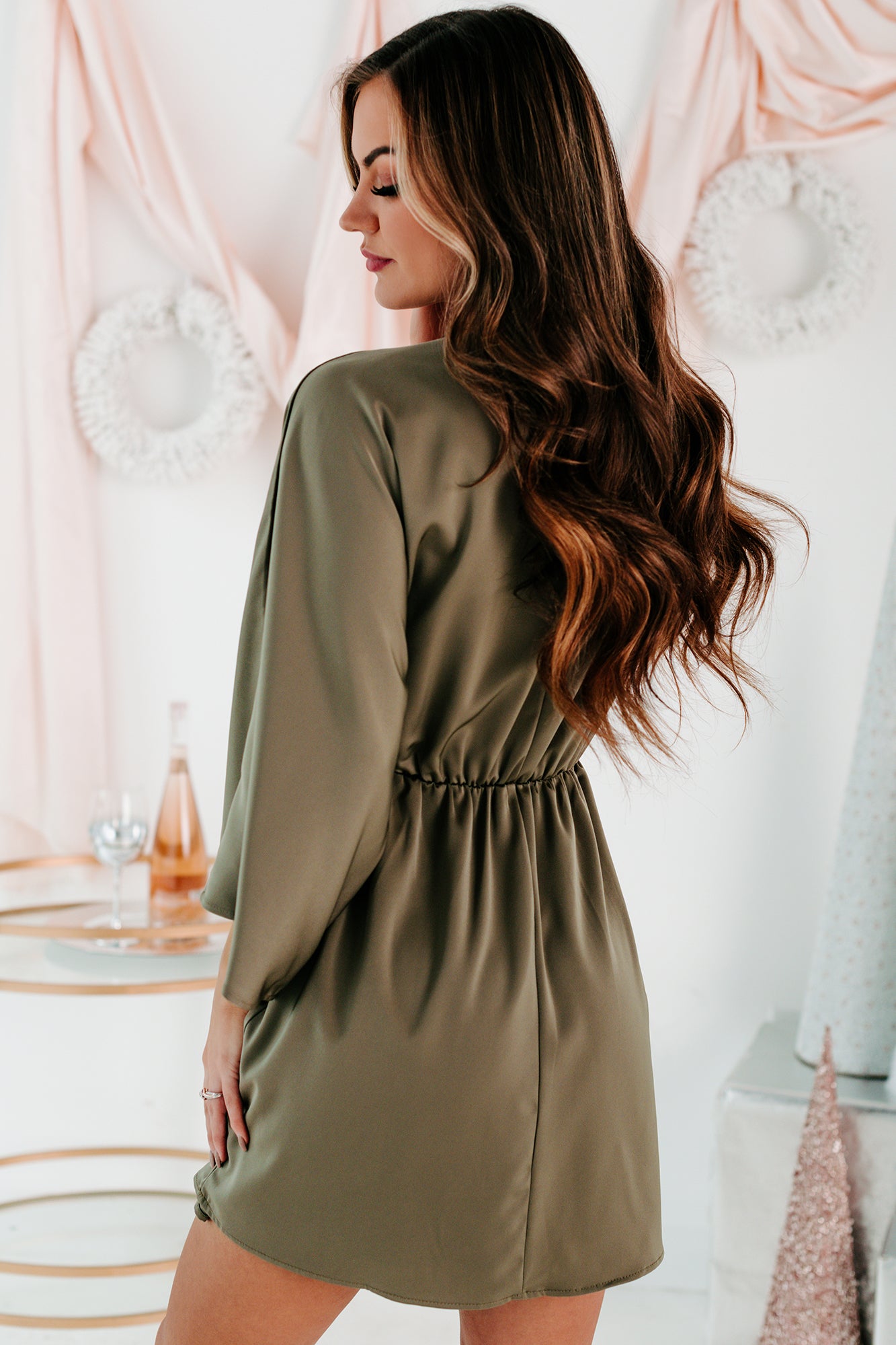 Romantic Reunion Cut-Out Satin Mini Dress (Olive) - NanaMacs