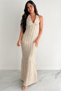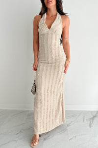 Runway Heart Halter Lace Maxi Dress (Vanilla) - NanaMacs