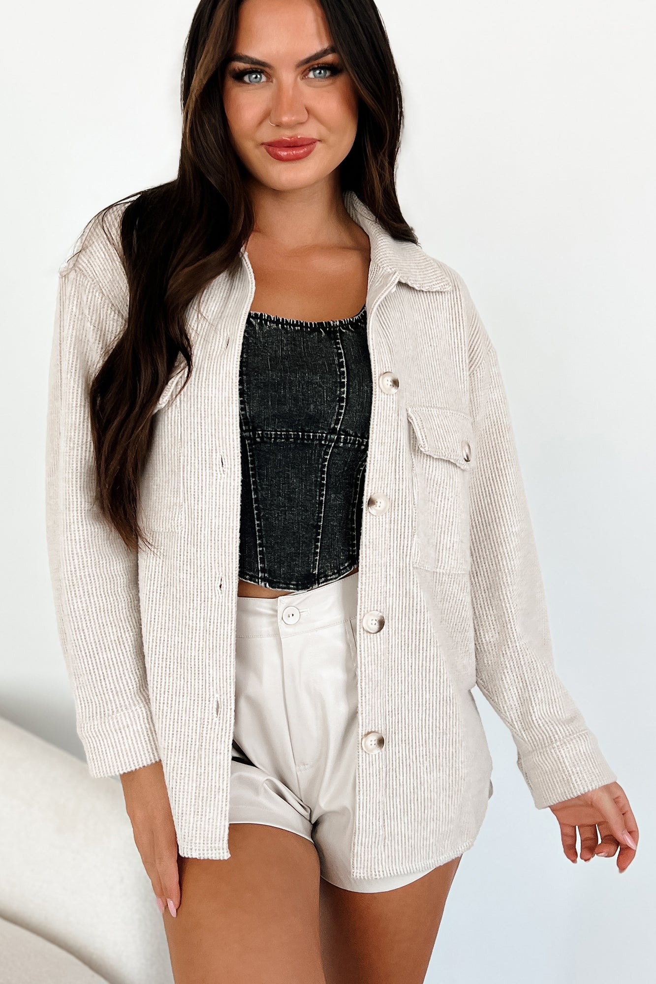 Ryland Brushed Waffle Knit Shacket (Oatmeal) - NanaMacs