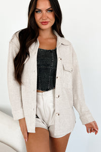 Ryland Brushed Waffle Knit Shacket (Oatmeal)