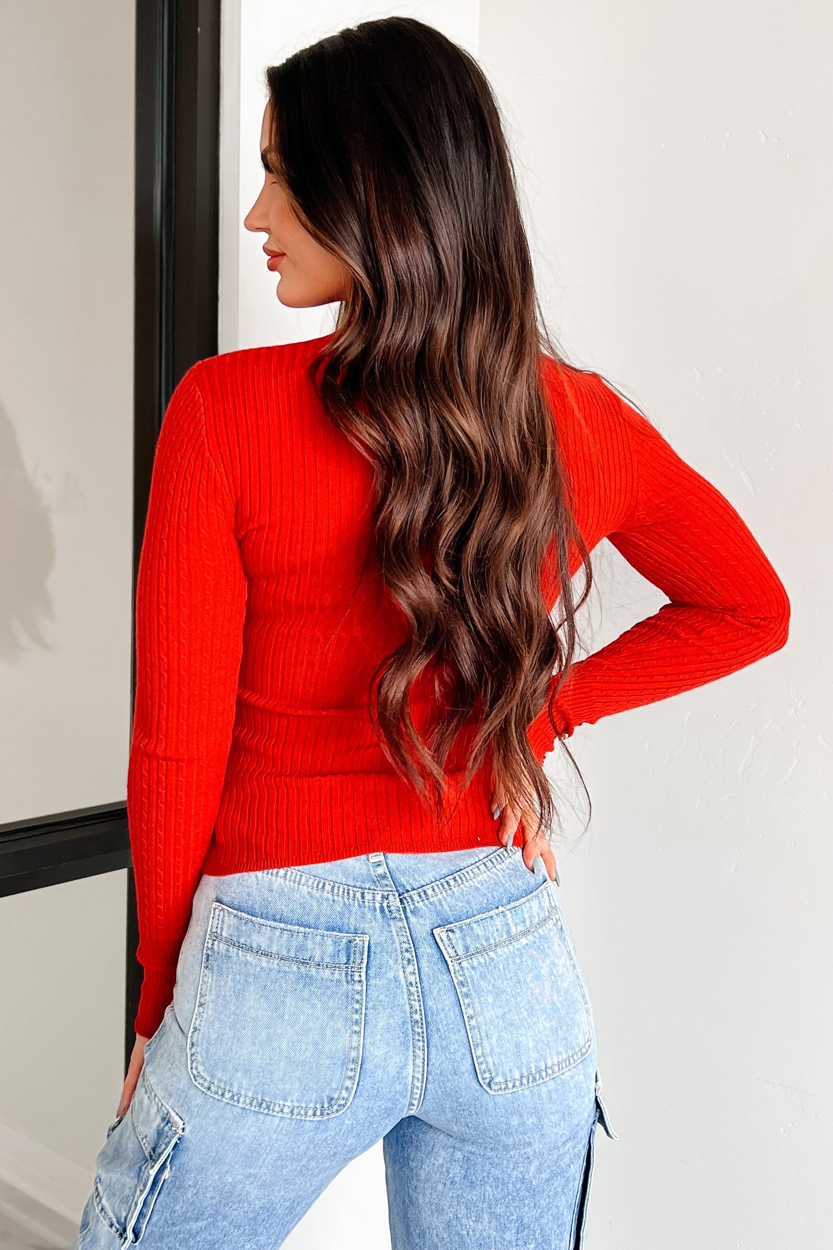 DOORBUSTER Sacred Promises Buttoned Sleeve Sweater Top (Red)
