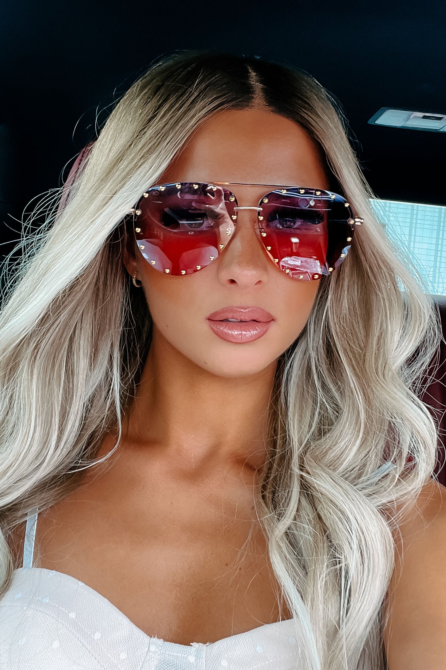 Santa Monica Sunshine Mixed Toned Studded Aviators (Purple/Pink/Gold)