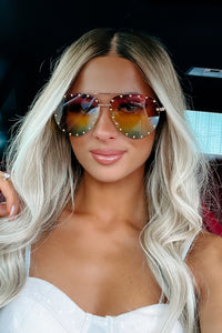 Santa Monica Sunshine Mixed Toned Studded Aviators (Purple/Yellow/Green)