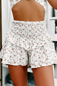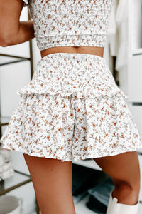 We Love This Ivory, Floral Crop Top & Shorts Set Because You Can Make Multiple Outfits With It!