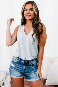 This Heather Grey, Ribbed, V-Neck Tank Top Is An Absolute Must-Have Basic For Any Closet!