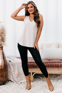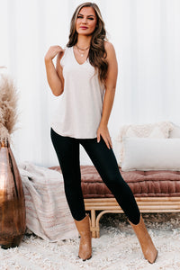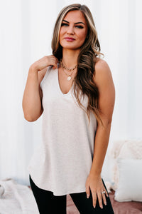 This Oatmeal, Ribbed, Flowy V-Neck Tank Top Is An Absolute Must-Have Basic For Any Closet!