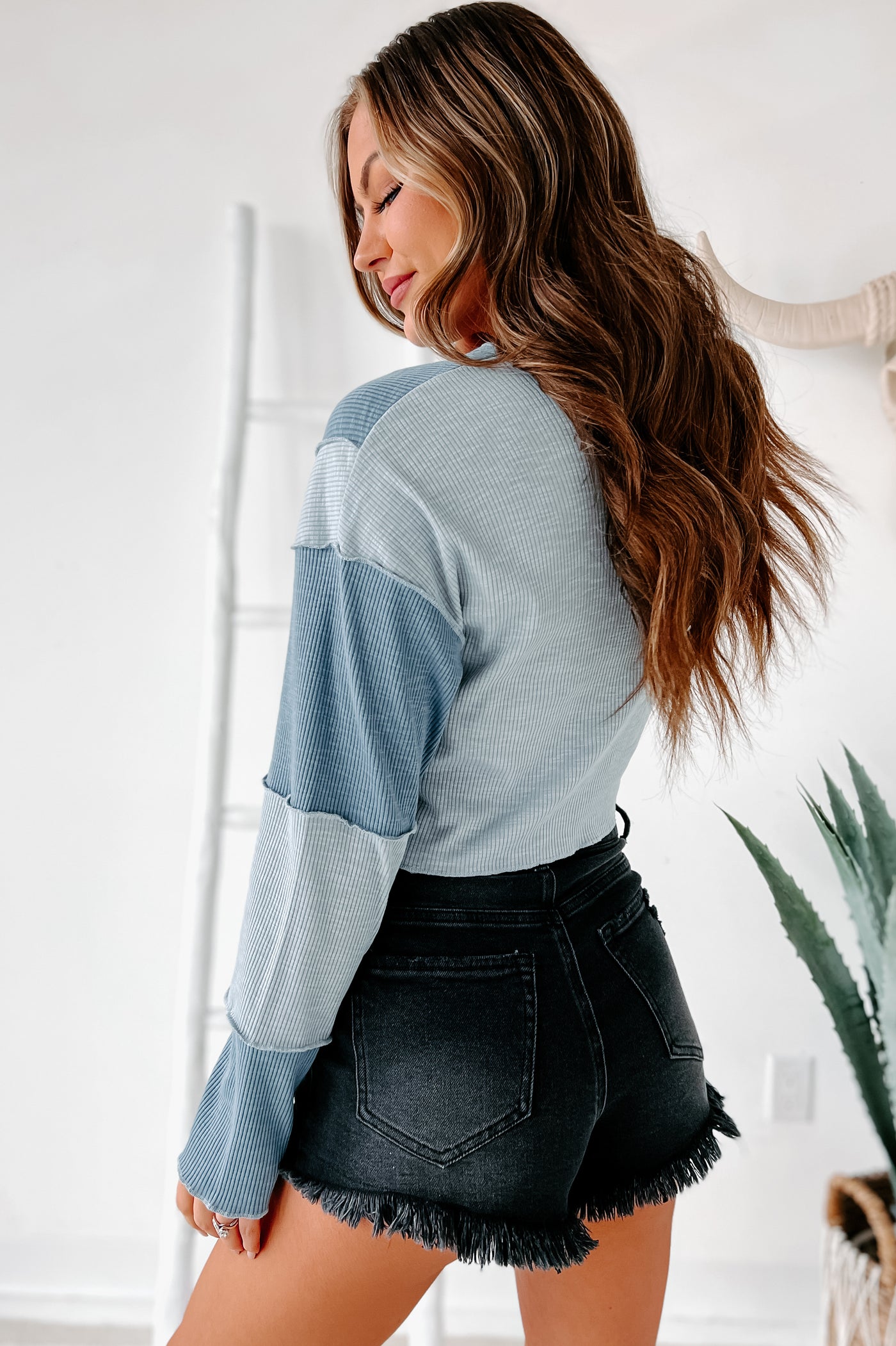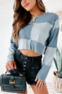 Seam Me Out Patchwork Crop Top (Blue) - NanaMacs