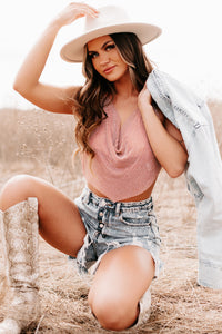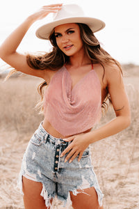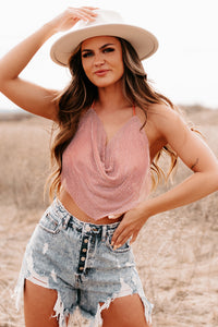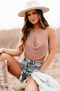 Serving Up Looks Rhinestone Cowl Neck Crop Top (Orange)