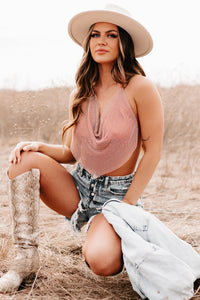 Make a bold impression in this beautiful Orange ensemble! The cowl neck and open back create an elegant silhouette, while the self-tie straps and rhinestone detail add glamorous flair!