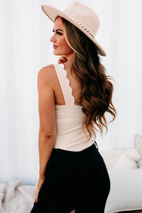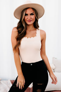 This Nude, Scallop Trimmed, Tank Top Bodysuit Is The Perfect Basic To Have For Cold Weather Layering!