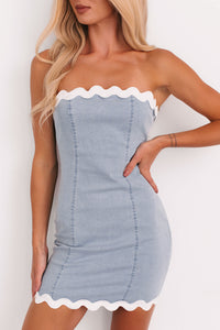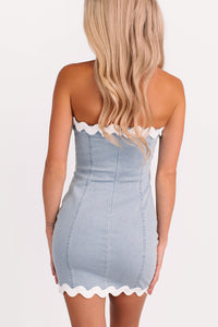 Simple Joys Wavy Trim Denim Mini Dress (Light Blue)