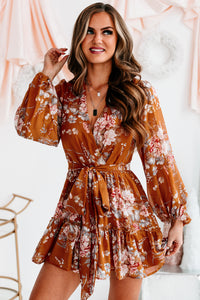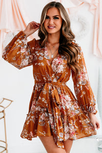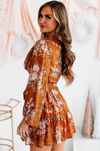 Simply Flourishing Long Sleeve Floral Mini Dress (Rust)