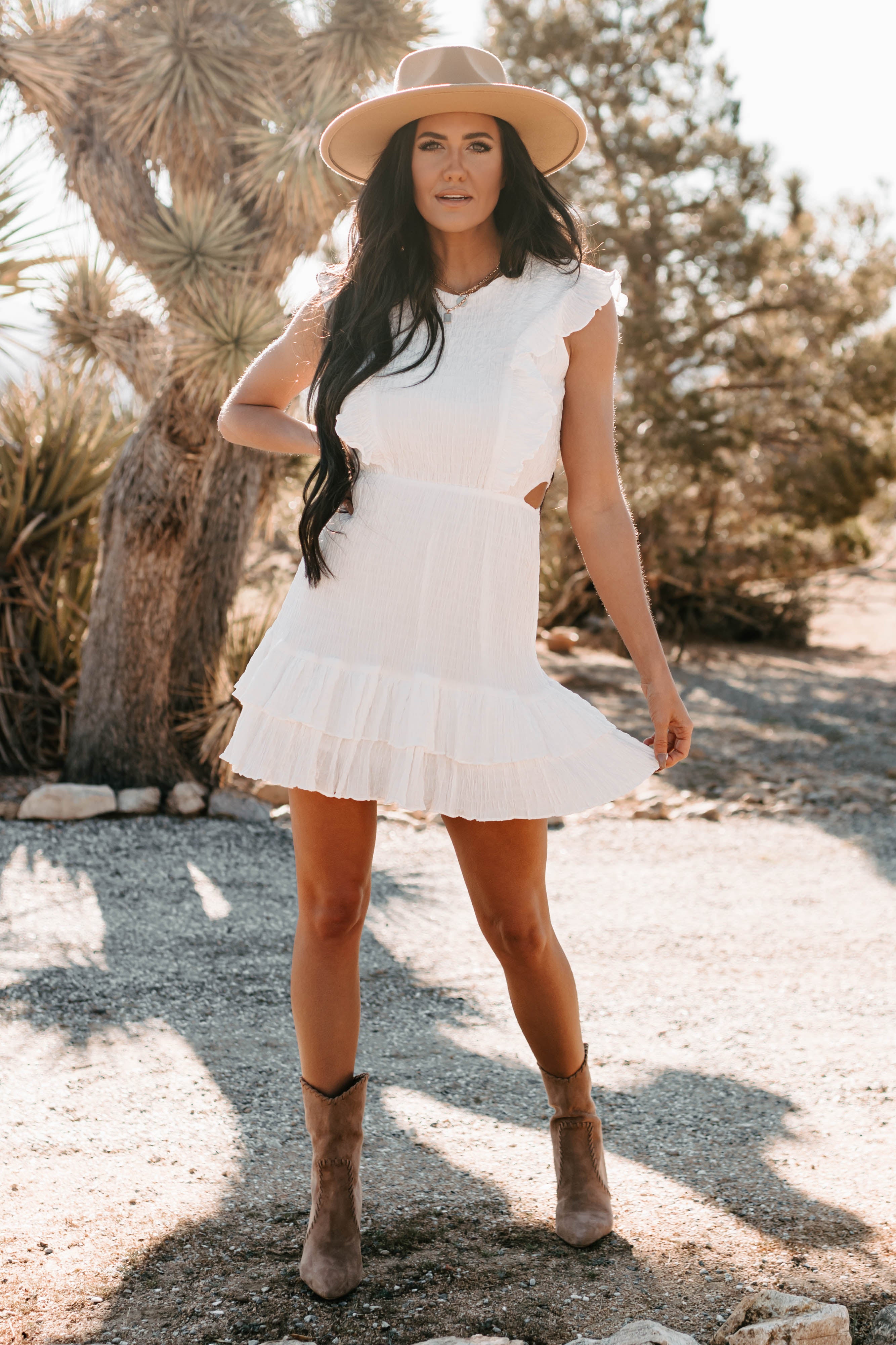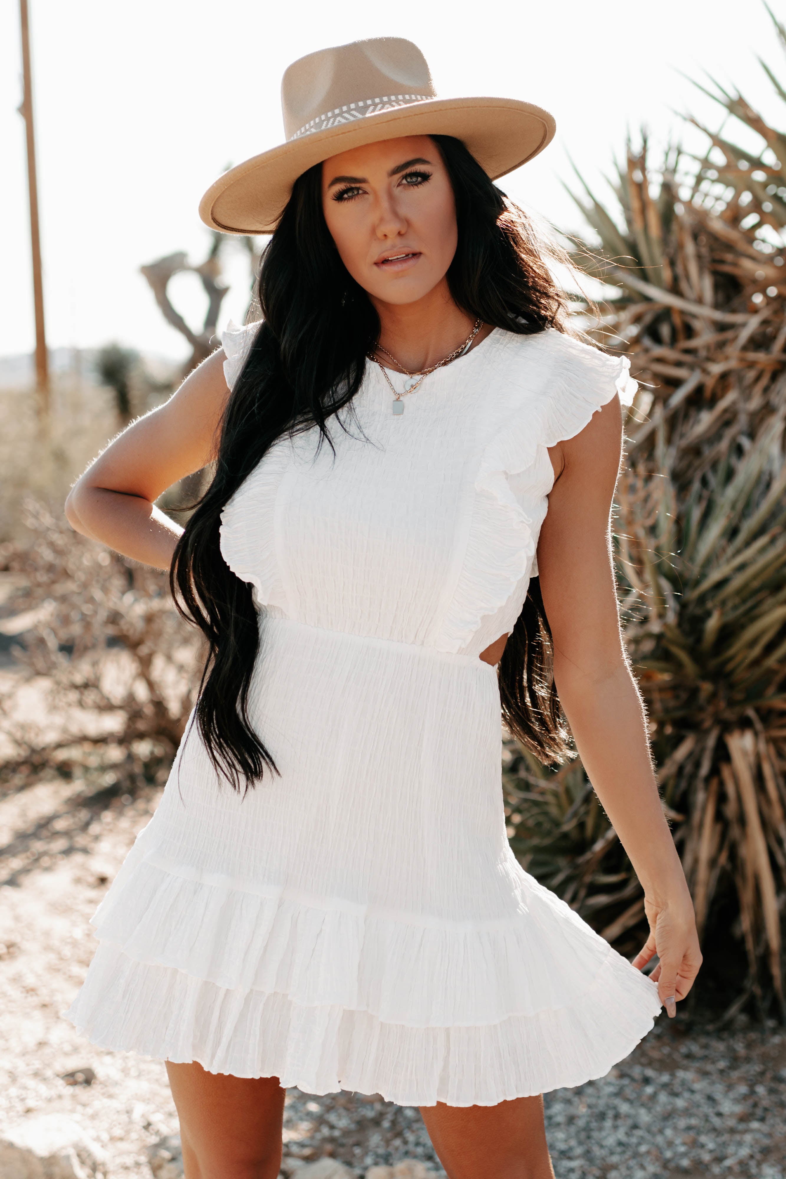 Simply Sweet Textured Cut-Out Dress (White) - NanaMacs