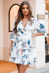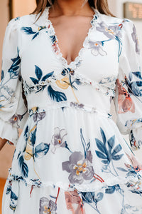 Skylinn Chiffon Floral Open-Back Dress (Off White) - NanaMacs