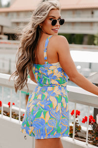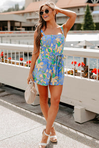 Slay All Day Abstract Sleeveless Romper (Green/Blue)