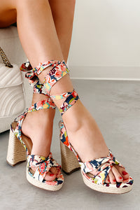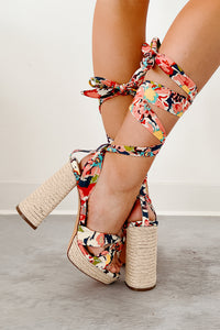 Slay Season Wrap Tie Espadrille Platform Heels (Floral)