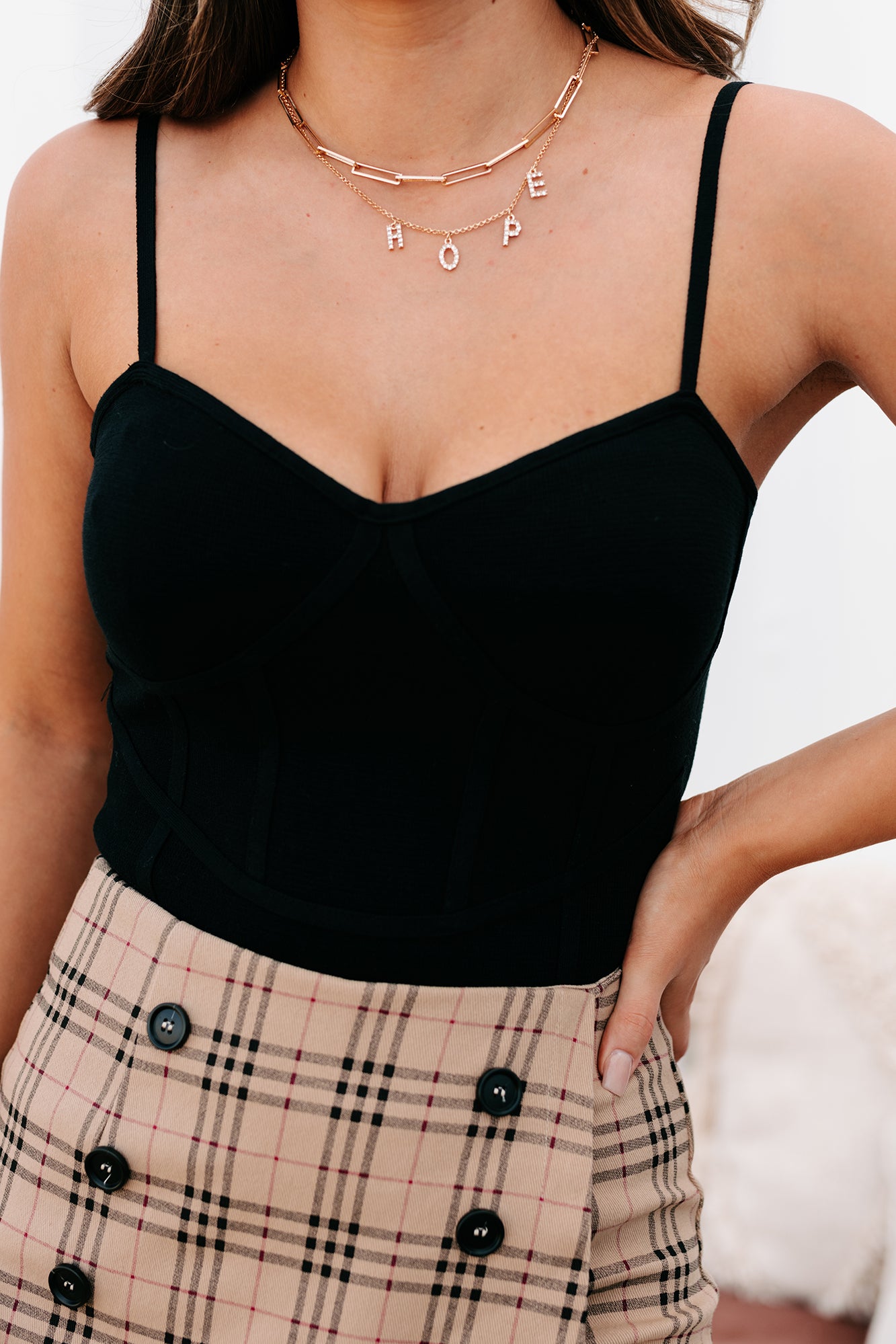 You're Going To Love The Quality Feel & Design Of This Black, Tank Strap, Sweater Knit Bodysuit!