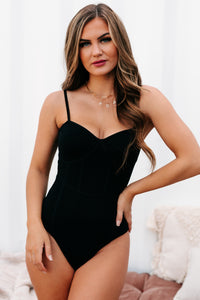 Slow Burn Sleeveless Sweater Knit Bodysuit (Black)