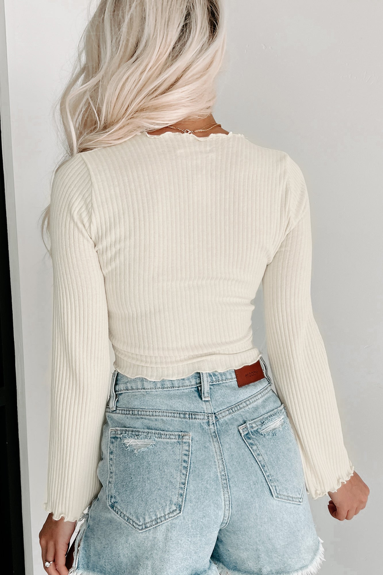 So Far So Good Lettuce Hem Cardigan Top (Oat) - NanaMacs