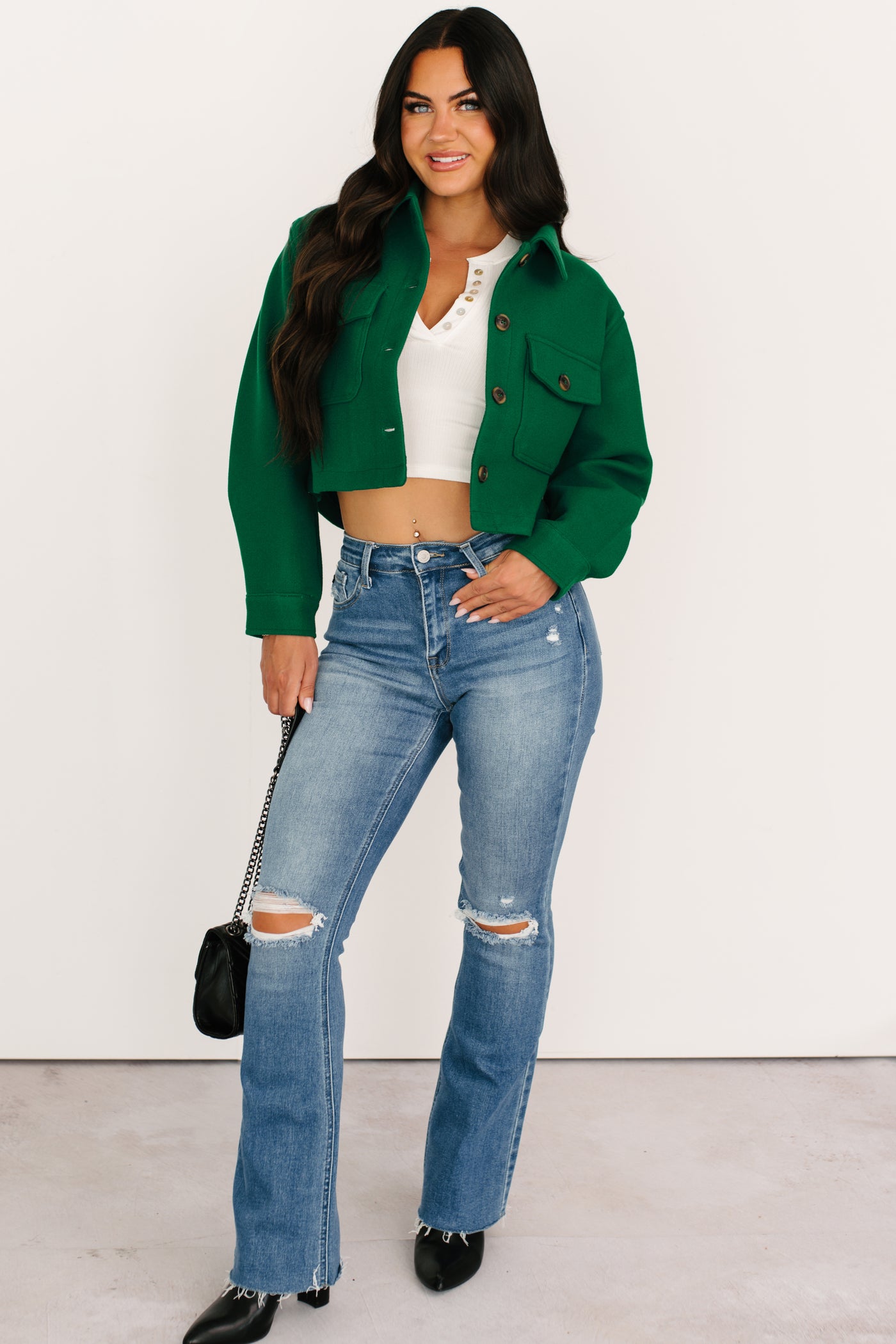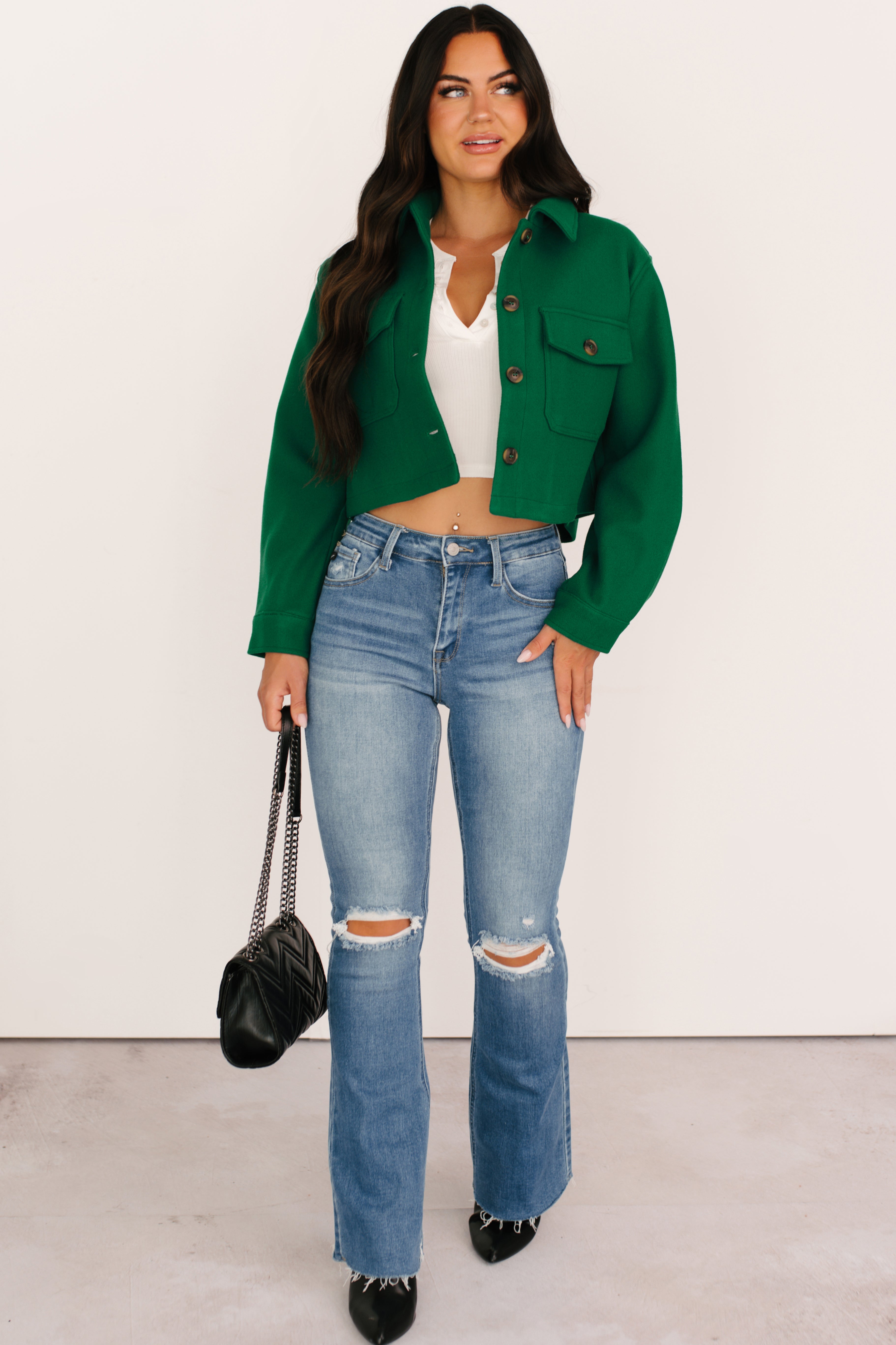 Soft But Savage Fleece Crop Jacket (Green) - NanaMacs