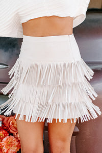 Somewhere South Fringe Faux Suede Mini Skirt (Stone) - NanaMacs