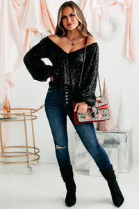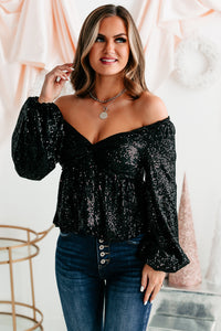Sparkle & Shine Sequin Balloon Sleeve Top (Black) - NanaMacs