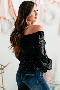 Sparkle & Shine Sequin Balloon Sleeve Top (Black)