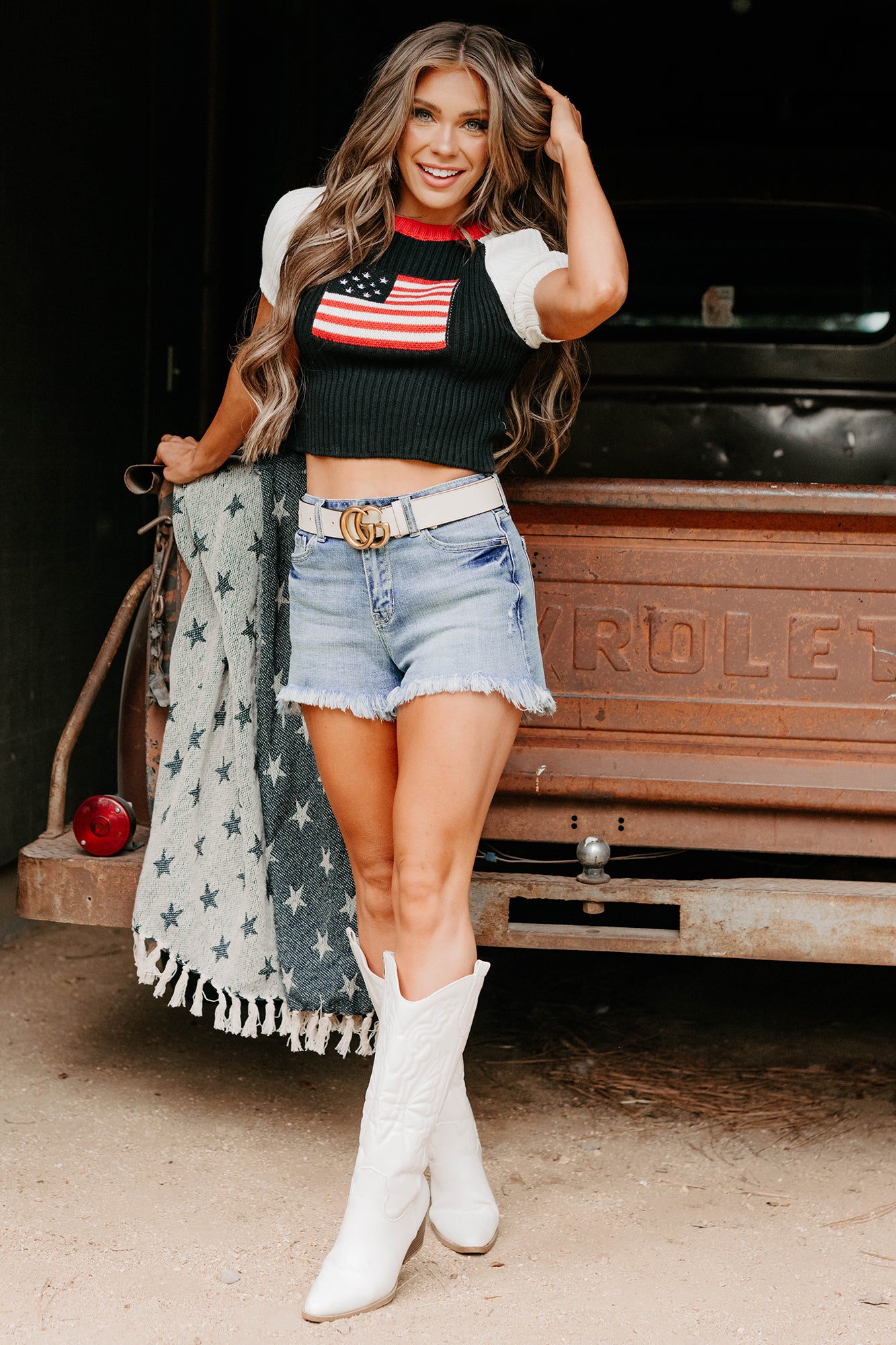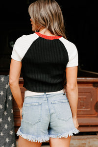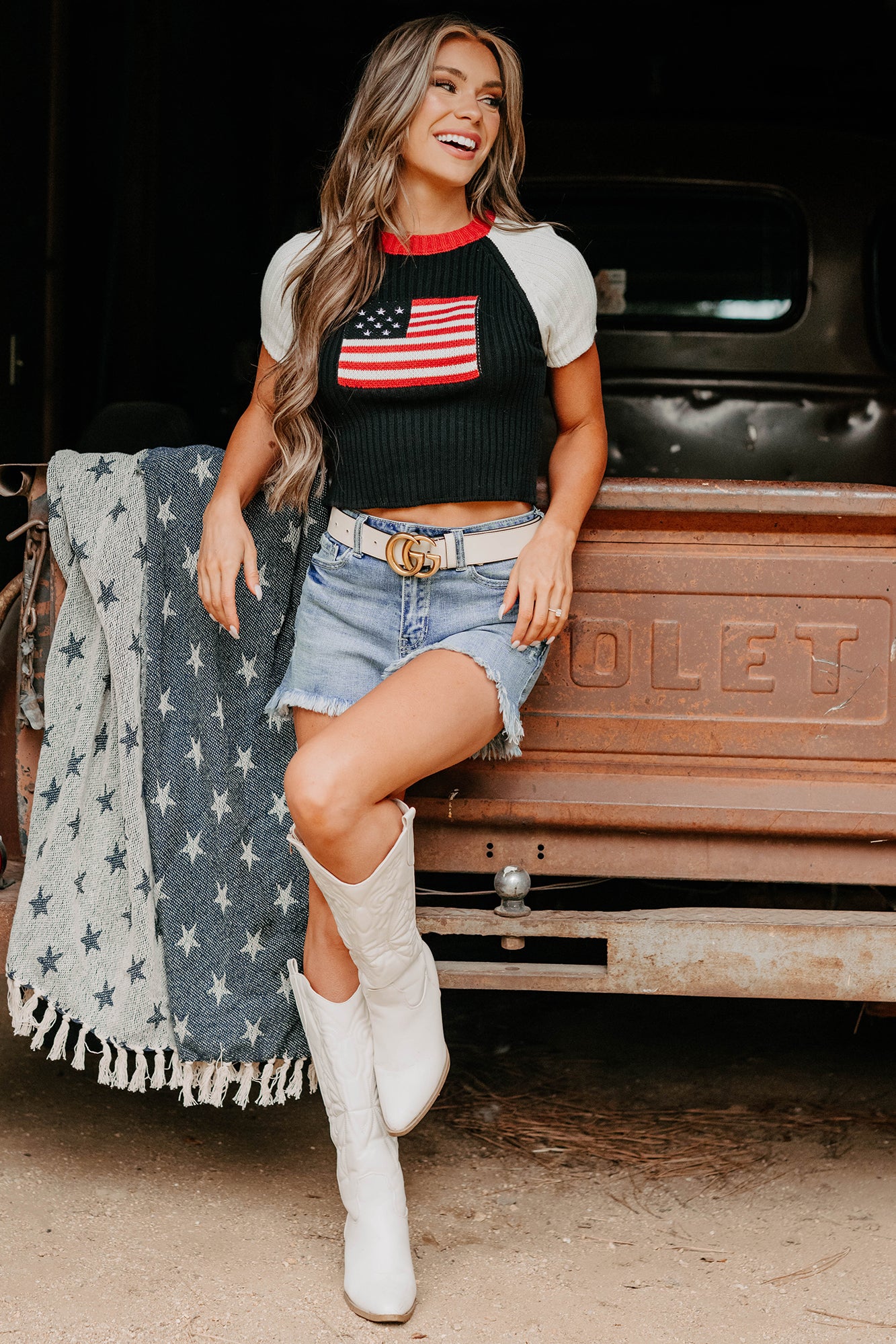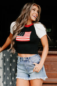 Starlet Style USA Flag Sweater Top (Black/White) - NanaMacs