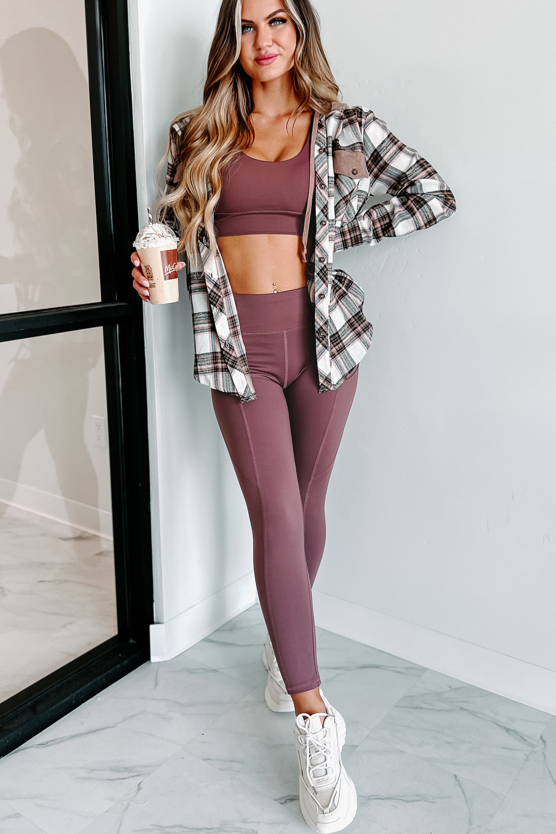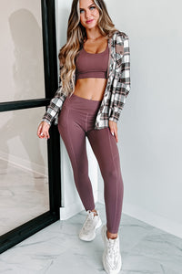 Starting Again Plaid Hooded Long Sleeve Top (Taupe/Black)