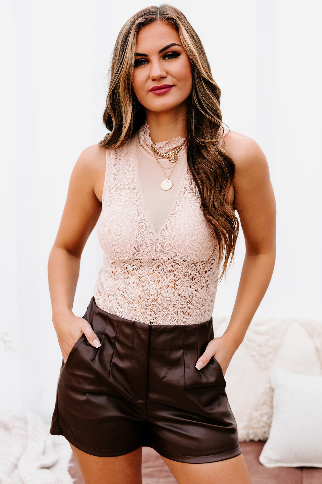 Stay Beautiful Lace Bodysuit (Khaki) - NanaMacs