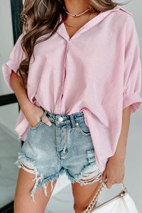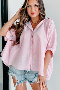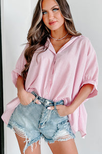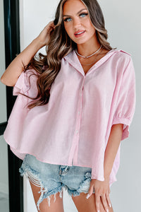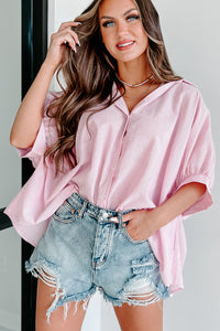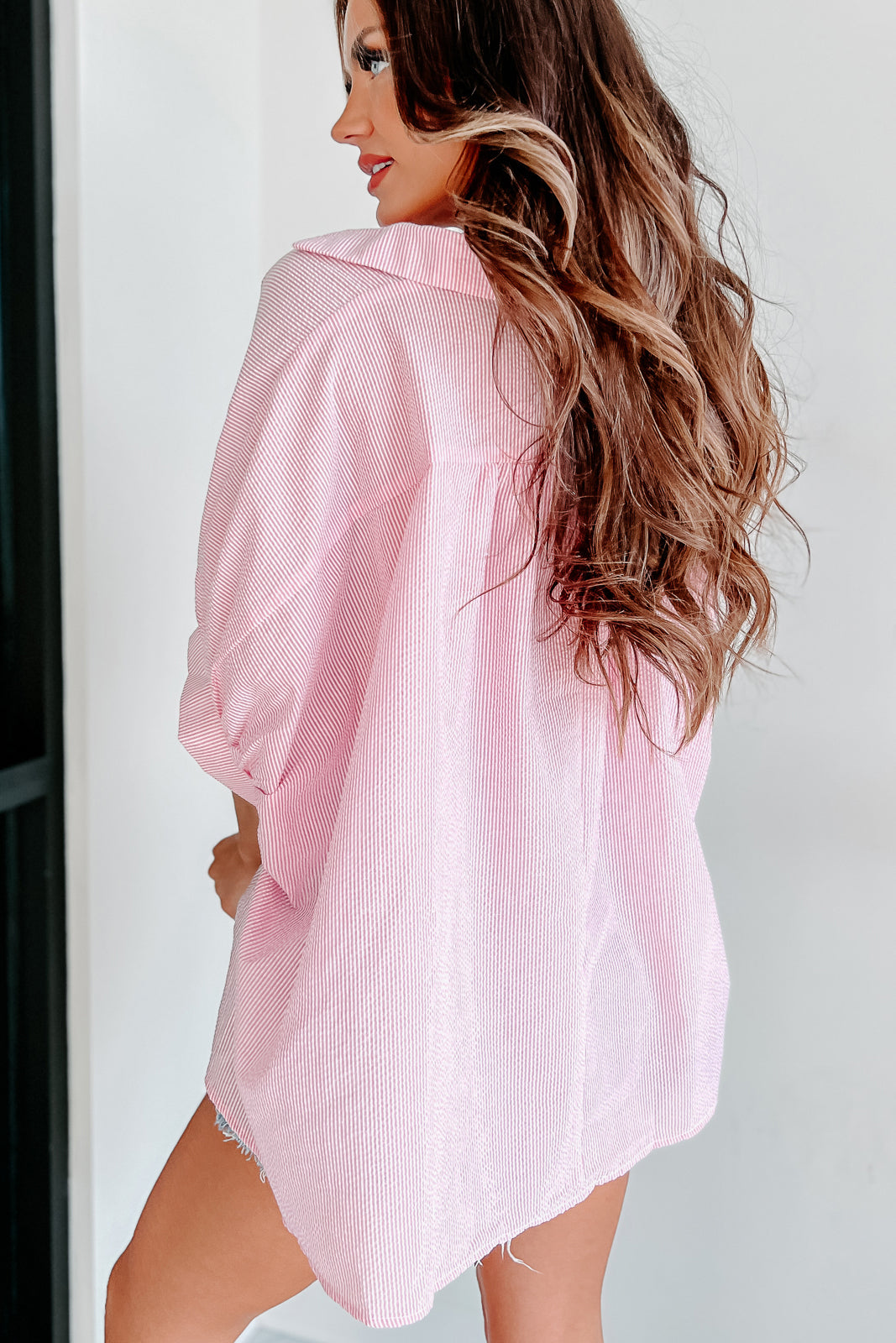 Staying Cute Oversized Striped Button-Down Top (Pink)