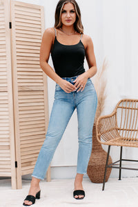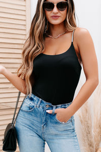 Staying Downtown Rhinestone Strap Bodysuit (Black)