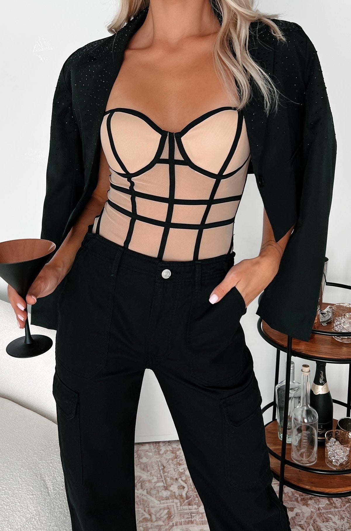 Staying Sassy Contrast Mesh Bodysuit (Taupe/Black)