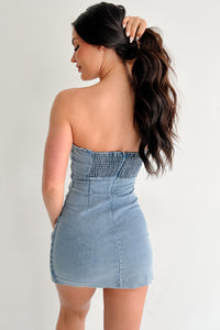 Street Couture Strapless Sweetheart Mini Dress (Denim) - NanaMacs