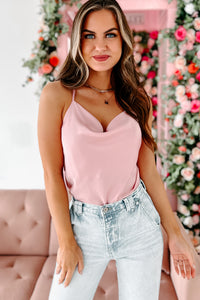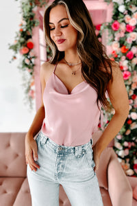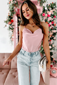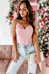 Stuck In The Moment Satin Cowl Neck Bodysuit (Pink)