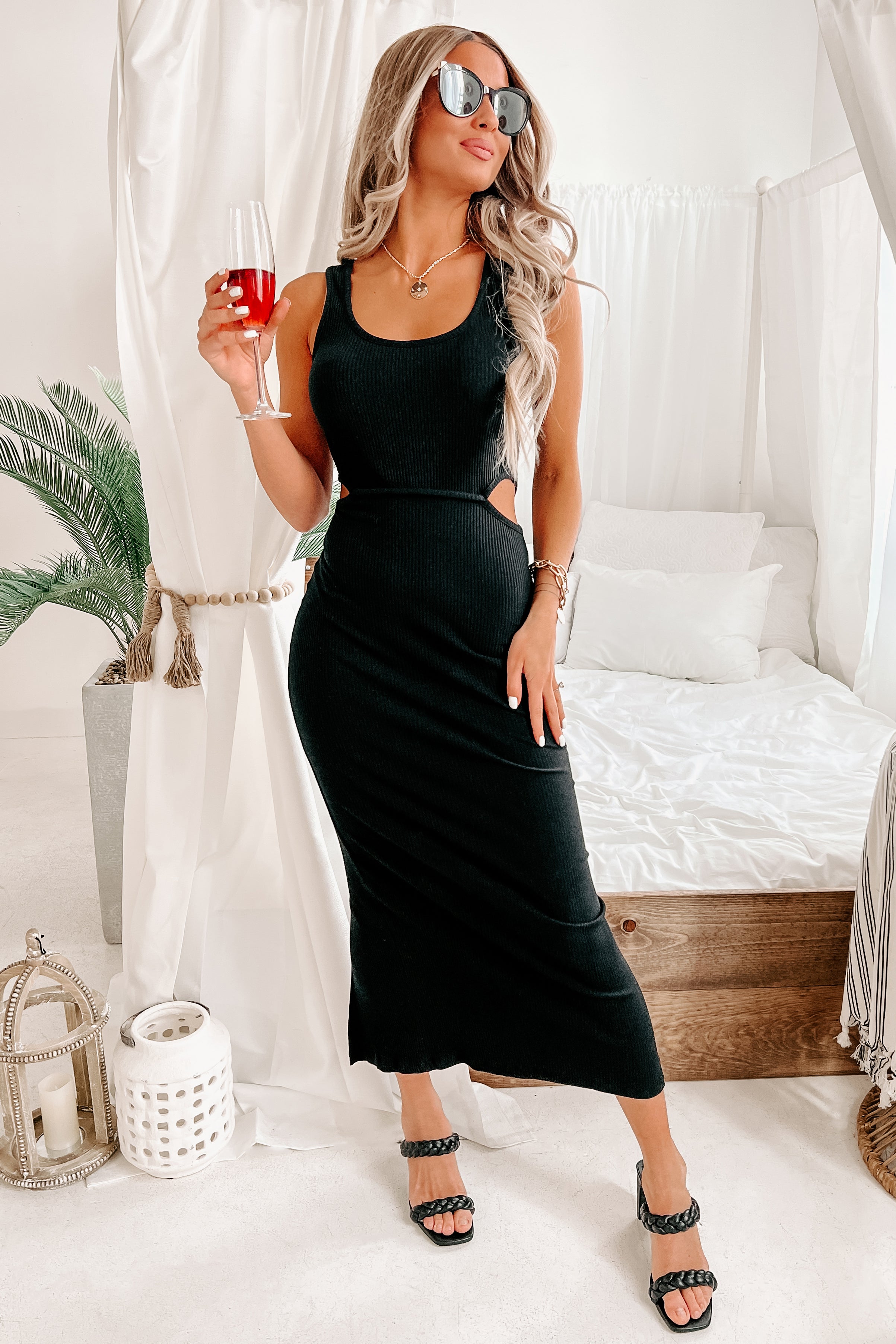 Such A Flirt Ribbed Cut-Out Bodycon Maxi (Black) - NanaMacs