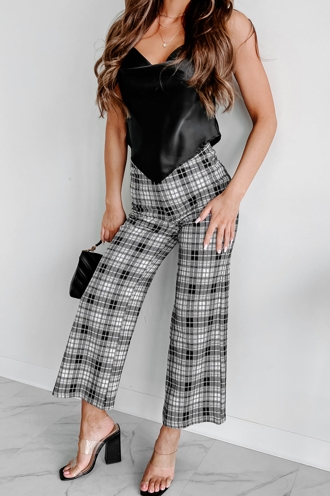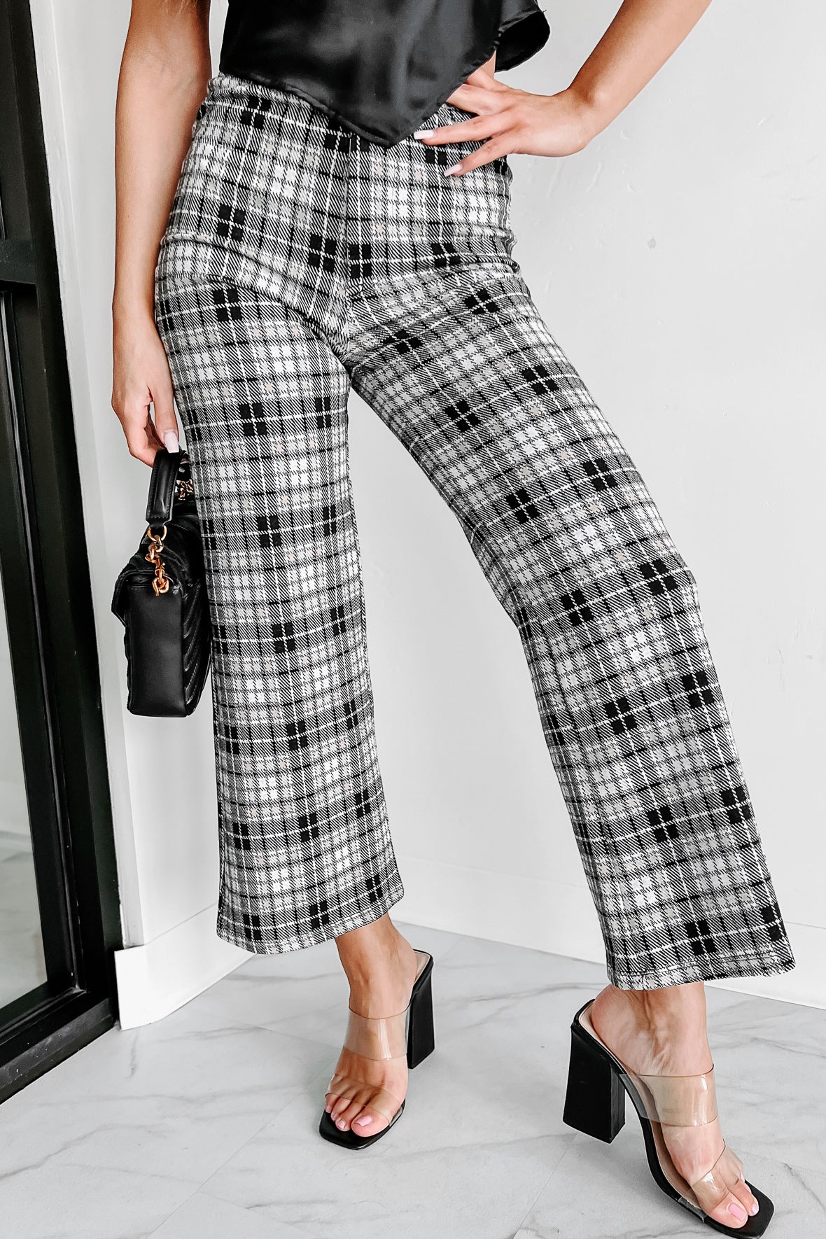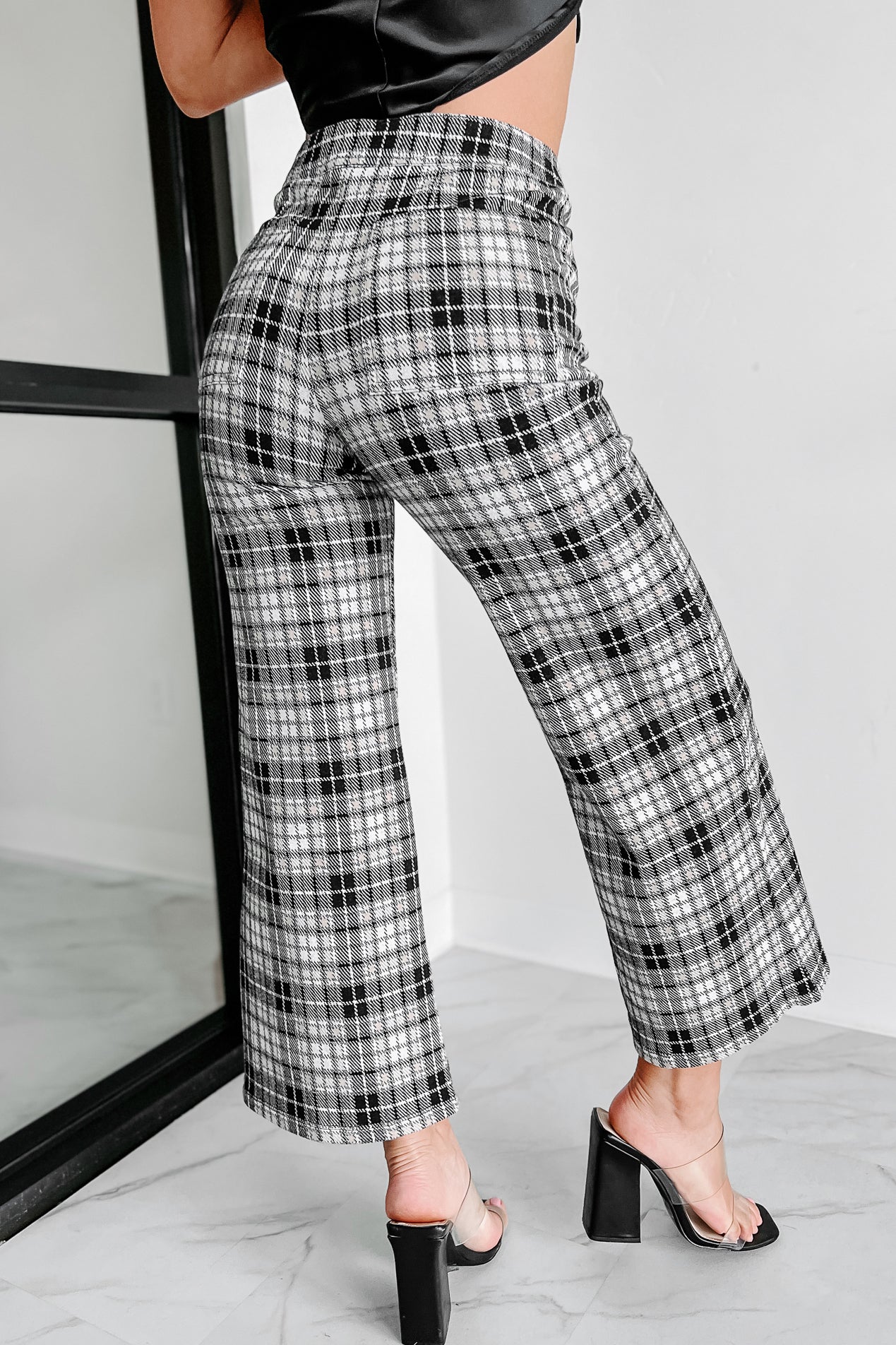 Superior Staple Plaid Wide Leg Pants (Black/Taupe) - NanaMacs