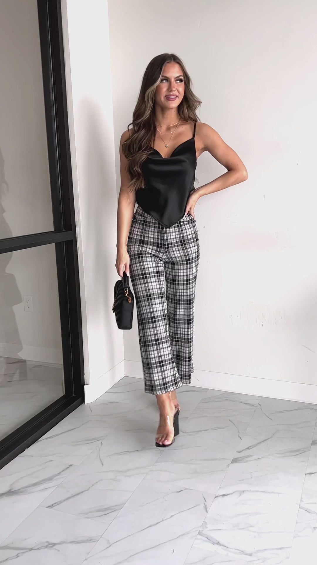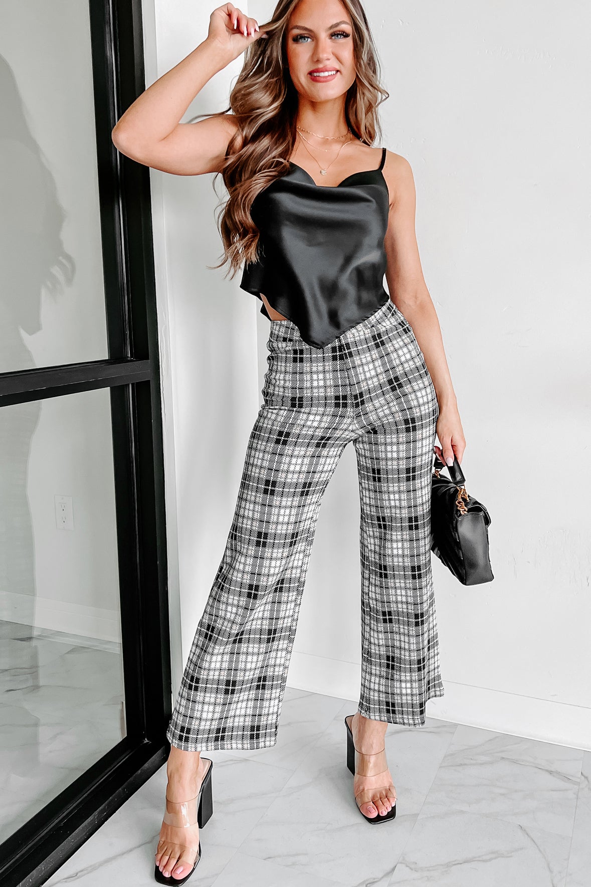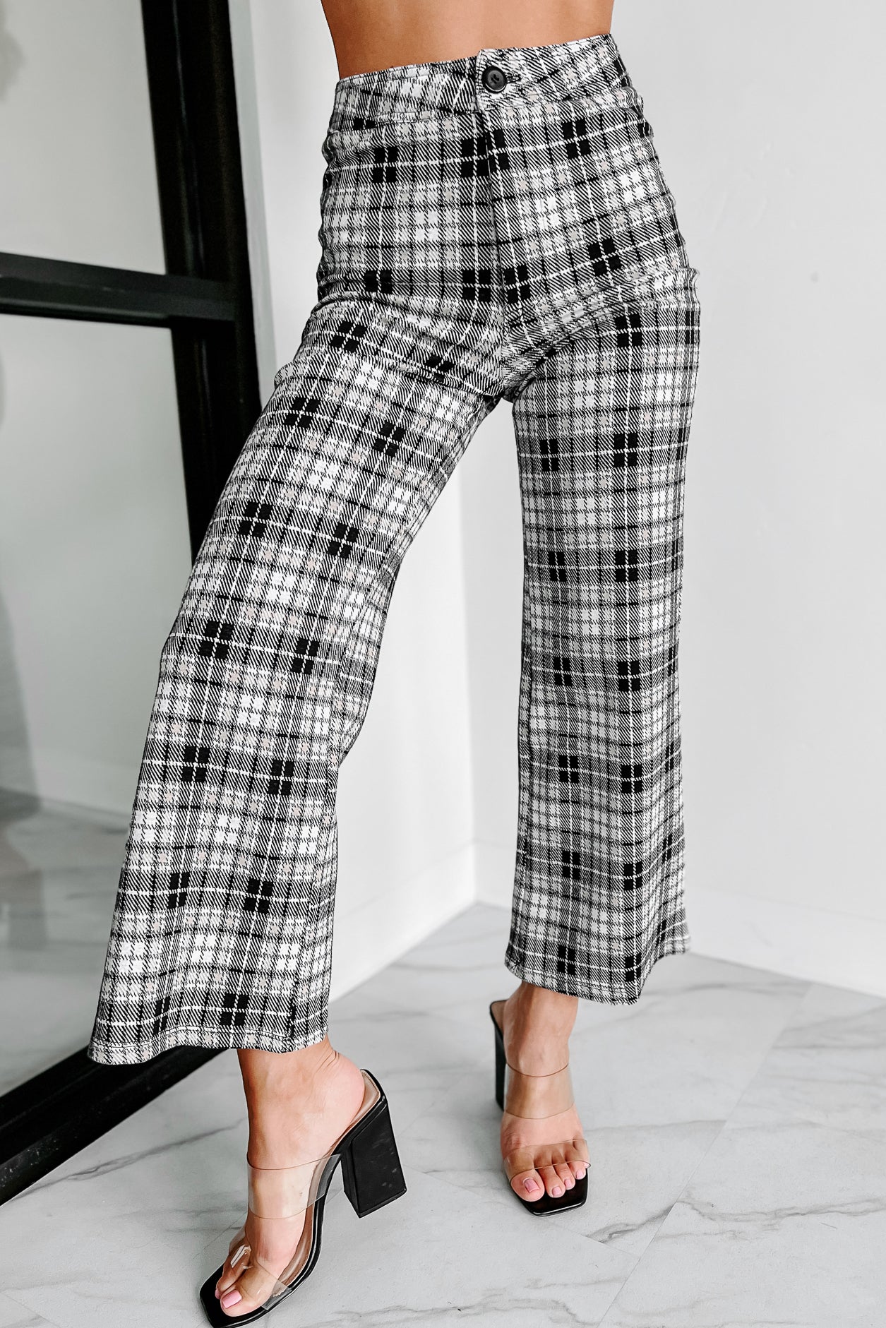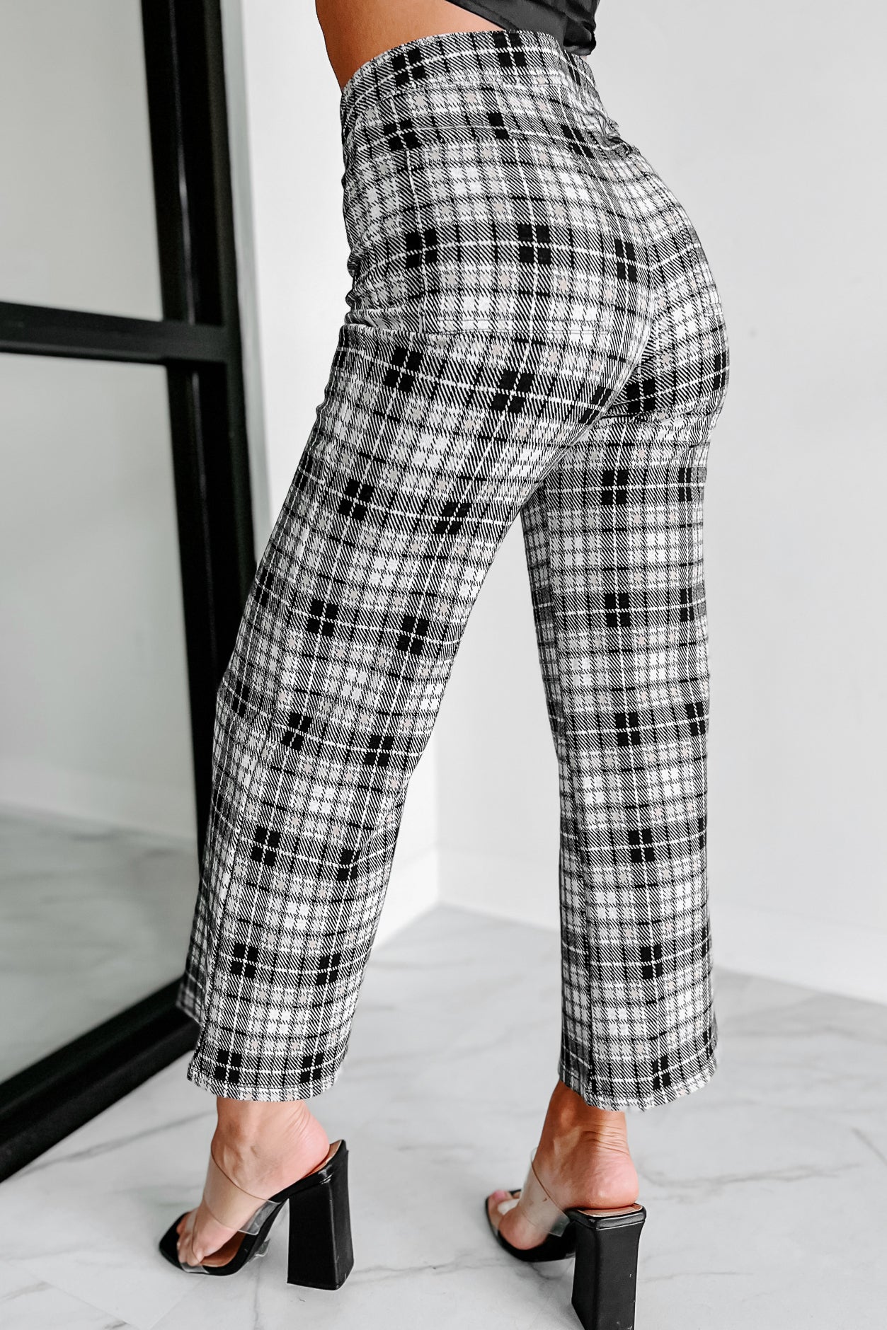 Superior Staple Plaid Wide Leg Pants (Black/Taupe) - NanaMacs