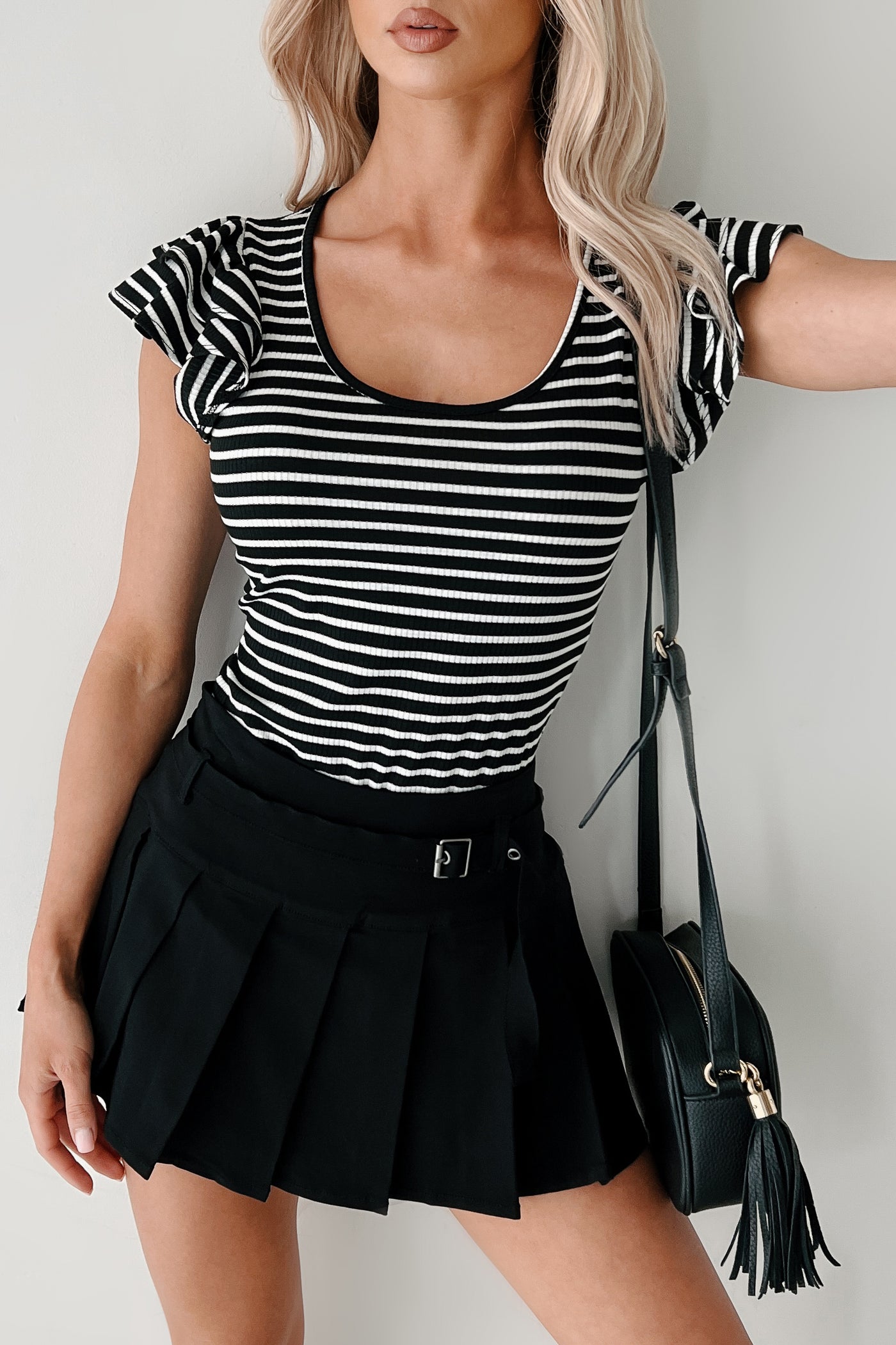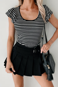 Sweet As Honey Ruffle Sleeve Striped Bodysuit (Black/White) - NanaMacs